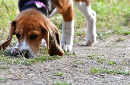 Diese andere Form der Spurensuche beinhaltet die sogenannte tiefe Nasenarbeit - d.h., es wird eine Duftspur am Boden verfolgt. Wie beim Mantrailing ist auch hier grundsätzlich jeder Hund geeignet.