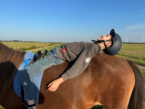 Der Kurs kann bei Interesse auch mit einem Pferd absolviert werden. Der körperliche Kontakt zum Tier hat eine beruhigende Wirkung. Ganz nebenbei werden Fähigkeiten zur Strukturierung und Organisation trainiert und das Vertrauen in die eigenen Fähigkeiten gestärkt.